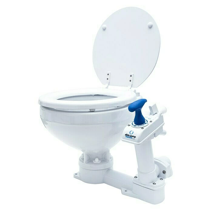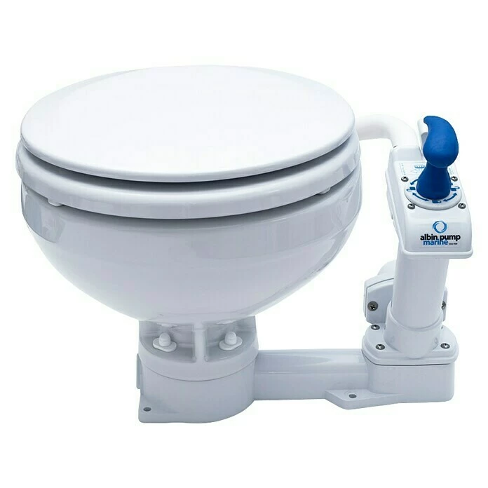 Die Bootstoilette manuell Compact von Albin Pump lässt sich dank ihrer stabilen Basis sehr robust und sicher installieren. Die Toilette ist mit einer ergonomischen Spülpumpe ausgestattet. Der zugehörige Griff lässt sich je nach Belieben auf der linken oder rechten Seite montieren. Das Becken ist aus hochwertiger Keramik gefertigt. Das führt dazu, dass die Toilette langlebig ist und sich besonders leicht reinigen lässt. Der Sitz ist aus lackiertem Holz gefertigt.