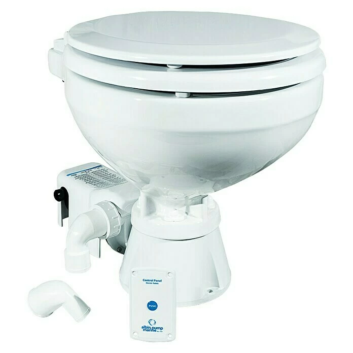 Die Bordtoilette Standard Elektro EVO Comfort 12V von Albin Pump lässt sich dank ihrer stabilen Basis sehr stabil und sicher installieren. Die Toilette ist mit einem One-Touch-Bedienfeld ausgestattet, dass das Abspülen einfach und hygienisch gestaltet. Durch den elektrischen Zerkleinerer sowie die leistungsstarke Pumpe wird zuverlässiges und ganzheitliches Spülen garantiert. Das mit einem thermoplastischen Softclose-Sitz ausgestattete Becken ist aus hochwertiger Keramik gefertigt was dazu führt, dass die Toilette besonders langlebig ist und sich leicht reinigen lässt. Das Einlassmaß liegt bei 19 mm, während das Auslassmaß 25 oder 38 mm betragen darf.