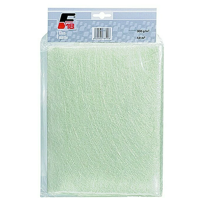 Die F18 Glasmatte ist ein Faserverstärkungsmittel zur Herstellung von Laminaten in Verbindung mit Polyester- oder Epoxidharz. Die Glasfasermatte ist leicht zu tränken, gut zu legen sowie leicht zu entlüften. Der Harzbedarf für die Durchtränkung von 1,0 m² F18 Glasmatte beträgt ca. 900 g. Pro Lage Glasfasermatte wird ca. 1,0 mm Laminatstärke erreicht.