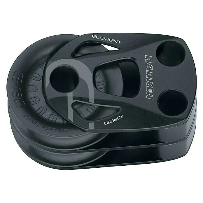 Der Doppelumlenkblock von Harken ist eine neuartige und voll überarbeitete Ergänzung speziell für Fahrtenyachten. Die Gleitlagerblöcke sind aus geschmiedeten, oberflächengehärteten Aluminium Wangen und glasfaserverstärkten Nylon Scheiben gefertigt. Sie zeichnen sich durch hohe Stabilität, insbesondere bei statischen Lasten aus. Der doppelte 60 mm Umlenker aus der Element Serie wird mit drei Schrauben auf Deck montiert. Dank seiner hohen Arbeitslast ist er auch für stark belastete Fallen geeignet.