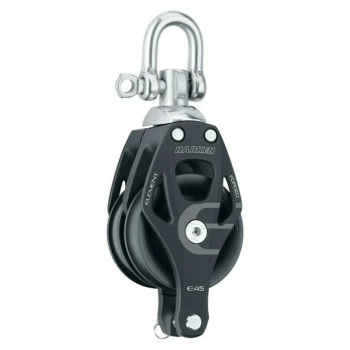 Der Doppelblock mit Hundsfott von Harken ist eine neuartige und voll überarbeitete Ergänzung speziell für Fahrtenyachten. Die Gleitlagerblöcke sind aus geschmiedeten, oberflächengehärteten Aluminium Wangen und glasfaserverstärkten Nylon Scheiben gefertigt, die sich durch hohe Stabilität, insbesondere bei statischen Lasten, auszeichnen. Dank seiner hohen Arbeitslast von 700 kg, ist der 45 mm Element Doppelblock, als Teil einer 5:1 Talje, vielseitig einsetzbar. Für einen sicheren Anschlag sorgen geschmiedete Schäkel und drehbare Kopfzapfen aus Edelstahl.