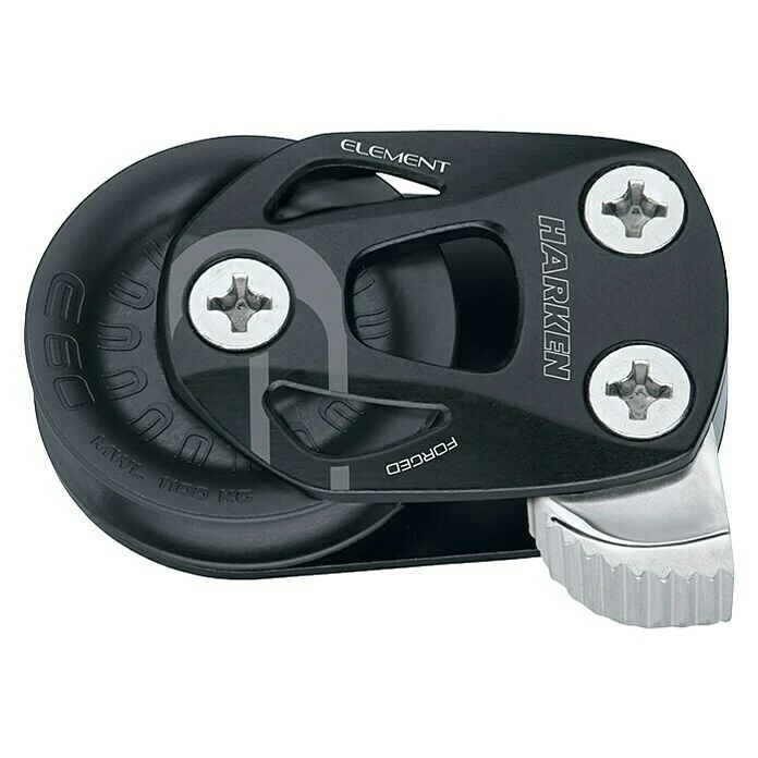 Der Doppelumlenkblock von Harken ist eine neuartige und voll überarbeitete Ergänzung speziell für Fahrtenyachten. Die Gleitlagerblöcke sind aus geschmiedeten, oberflächengehärteten Aluminium Wangen und glasfaserverstärkten Nylon Scheiben gefertigt. Sie zeichnen sich durch hohe Stabilität, insbesondere bei statischen Lasten aus. Der einfache 60 mm Umlenker mit Lockoff aus der Element Serie wird mit drei Schrauben auf Deck montiert. Dank seiner hohen Arbeitslast ist er auch für stark belastete Fallen geeignet. Der Lockoff sichert das Tauwerk kurzfristig, wenn die Winsch anderweitig gebraucht wird.