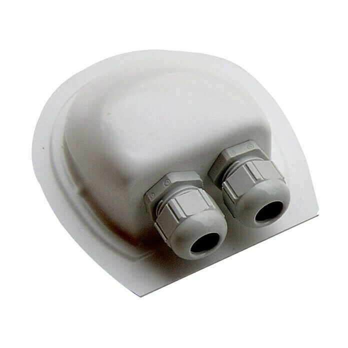 Die Kabeldurchführung von Sunset bestehen aus weißem Kunststoff. Sie werden auf der Montagefläche aufgeklebt und sind aufgrund ihrer UV- und Witterungsbeständigkeit für den Außenbereich geeignet. Die Kabelverschraubungen dichten das durchzuführende Kabel so ab, dass keine Feuchtigkeit in das Gehäuse eindringen kann.