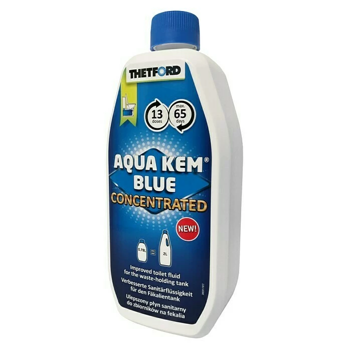 Der Toilettenzusatz Aqua Kem Blue Konzentrat von Thetford eignet sich ideal für Wohnwägen, Wohnmobile, Camper oder Boote. Der leistungsfähige, flüssige Toilettenzusatz ist platz- und gewichtsparend zu Lagern und fördert das Zersetzen der festen Bestandteile im Abwassertank. Dies erleichtert dessen Entleerung. Gleichzeitig unterdrückt dieser Sanitärzusatz unerwünschte Gerüche und bleibt bei durchschnittlicher Toilettennutzung ungefähr 4 bis 5 Tage aktiv. Selbst wenn Aqua Kem Blue einfriert, hat er nach dem Auftauen nichts von seiner Wirkung eingebüßt.