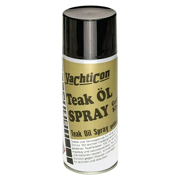 Das Teak Öl-Spray Golden Klassik von Yachticon sorgt für langanhaltenden Schutz behandelter Teakflächen und ist bestens geeignet für das schnelle Ölen und Versiegeln zwischendurch. Die leichte Farbpigmentierung ergibt einen goldenen Teakton. Es ist schnelltrocknend und für den Innen- und Außenbereich geeignet.
